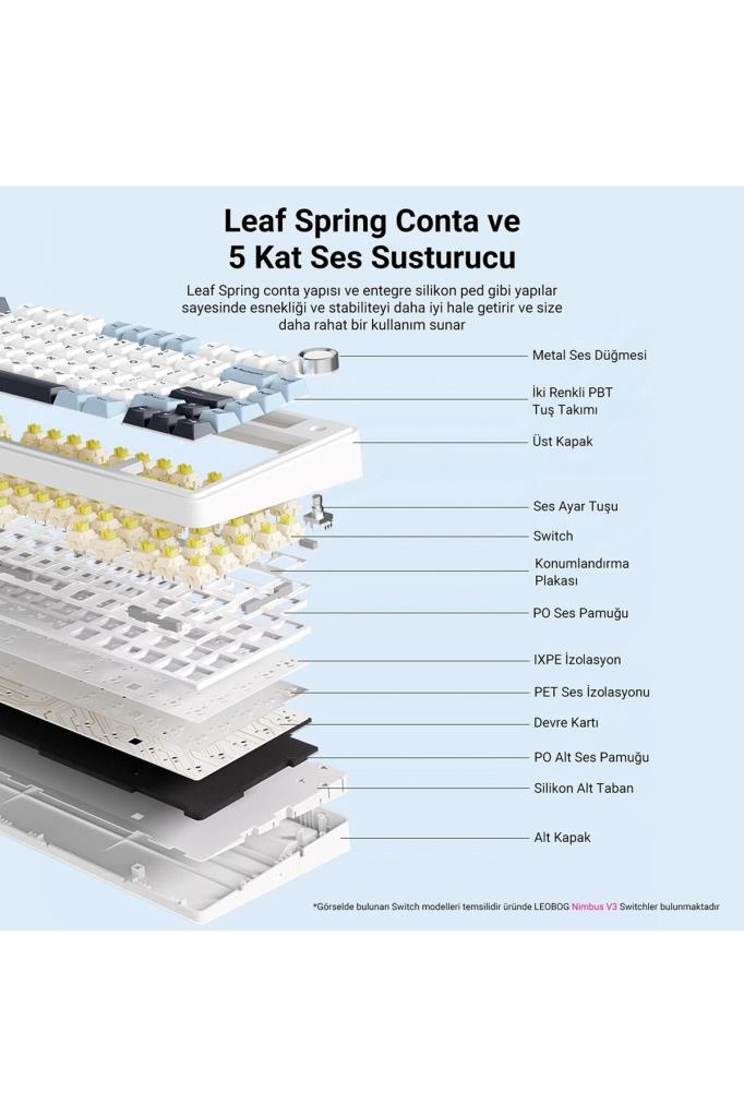 • Aula F75 RGB TKL Nimbus V3 Switch Kablolu/Kablosuz Mekanik Oyuncu Klavyesi